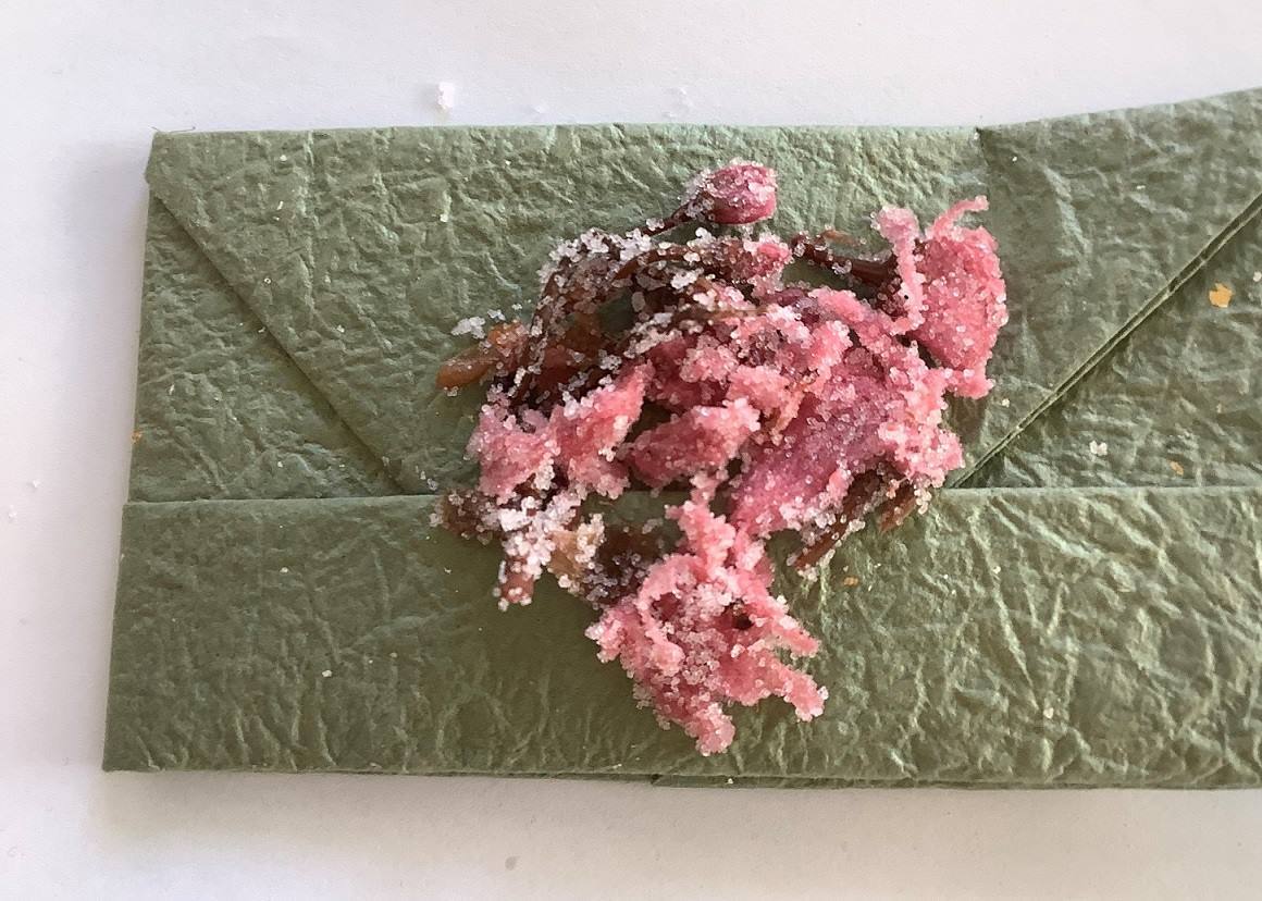 原材料名 ;小麦粉(小麦(国産))、砂糖(てん菜(国産))、バター(生乳(国産))、卵(国産)、蜂蜜、桜花葉漬け、塩(桜花葉漬け由来)、梅酢(桜花葉漬け由来)